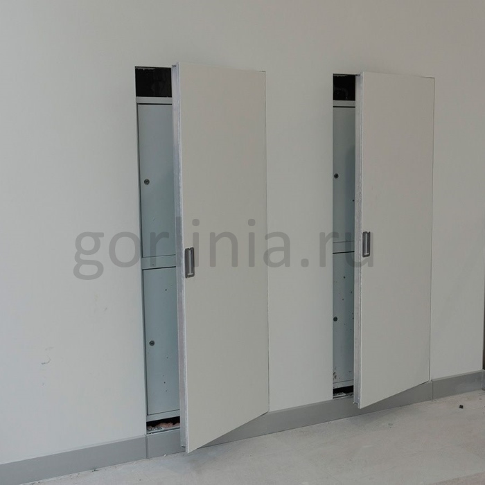 Распашной механизм открывания на петлях собственной разработки, 6 комбинаций ручек, защелок и замков.