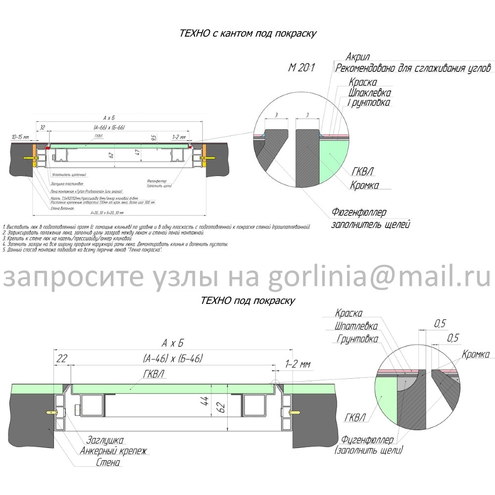 Размеры створки и светового проема варьируются с учетом наличия защитного канта профиля по контуру притвора.