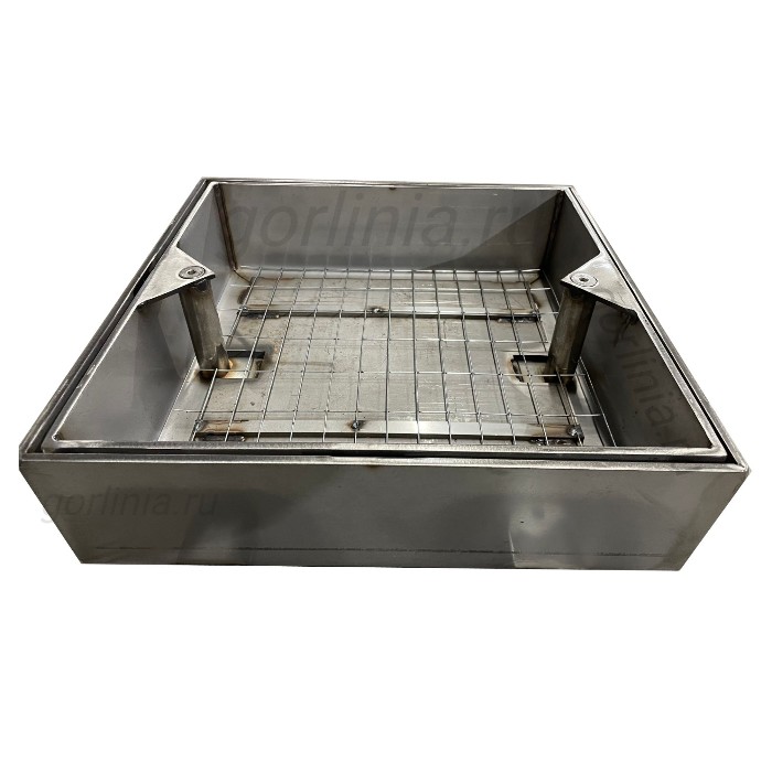Каркас коробки и створки сварен из стали AISI 304 с толщиной стенки 5-6 мм; в дне корыта лист 5-8 мм, снизу армирован профильной трубой. Сварка аргонно-дуговая. Характер шва: сплошной с присадками для нержавейки.