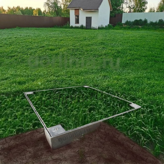 Крышку вынимают специальными крюками с т-образными наконечниками через отверстия по углам. Закажите исполнение с крепежными ушами (пластинами) для удобства монтажа и выставления в уровень земли. Усиление каркаса корыта профилем является доп. опцией (см. фотогалерею)