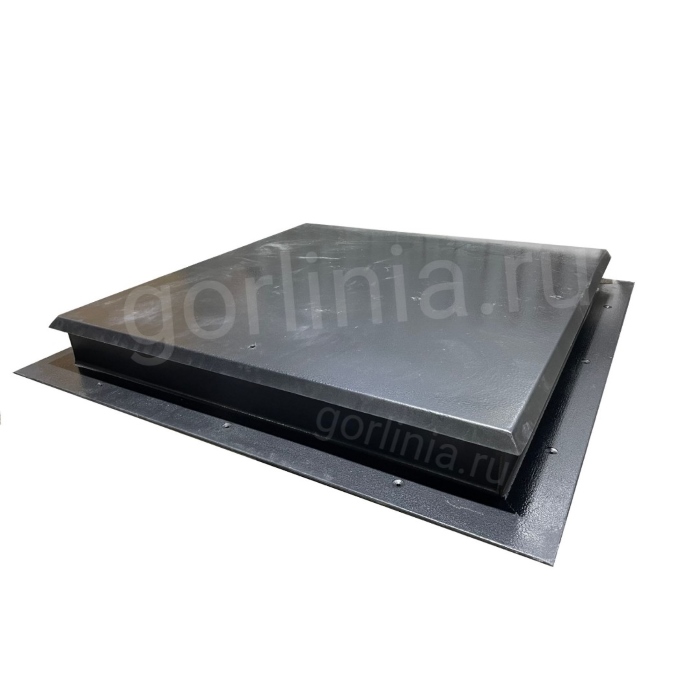Откидная крышка закрыта сверху гладким стальным листом с загнутыми к низу краями, вылетающими на 30 мм за периметр коробки. Внутри каркаса откидной двери между ребрами обвязки проложен рулонный минеральный утеплитель 50 мм, подшитый снизу листом 1 мм.