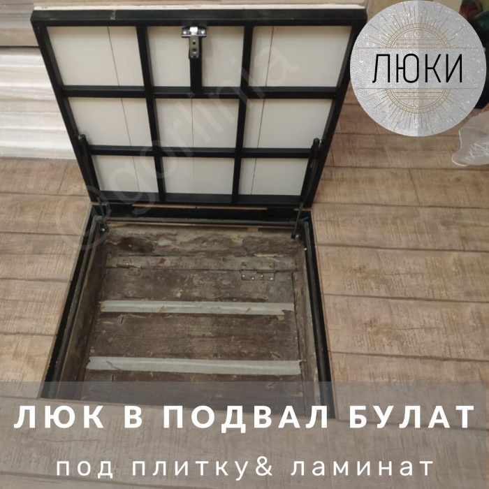 Облегченная модель с утеплителем 20 мм в дверце без щелей в полу, смещенными за ось открывания петлями. Легкая ходовая часть и удобная установка с наличником. Заполнение крышки - гипсоволокнистый влагостойкий лист, выставлен в уровень внешней полки рамы под наклейку плитки или ламината.