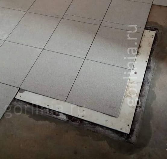 Продуманная схема монтажа с облицовкой примыкающего по периметру обрамления и полотна керамическим или ламинированным покрытием с эффектом невидимки.